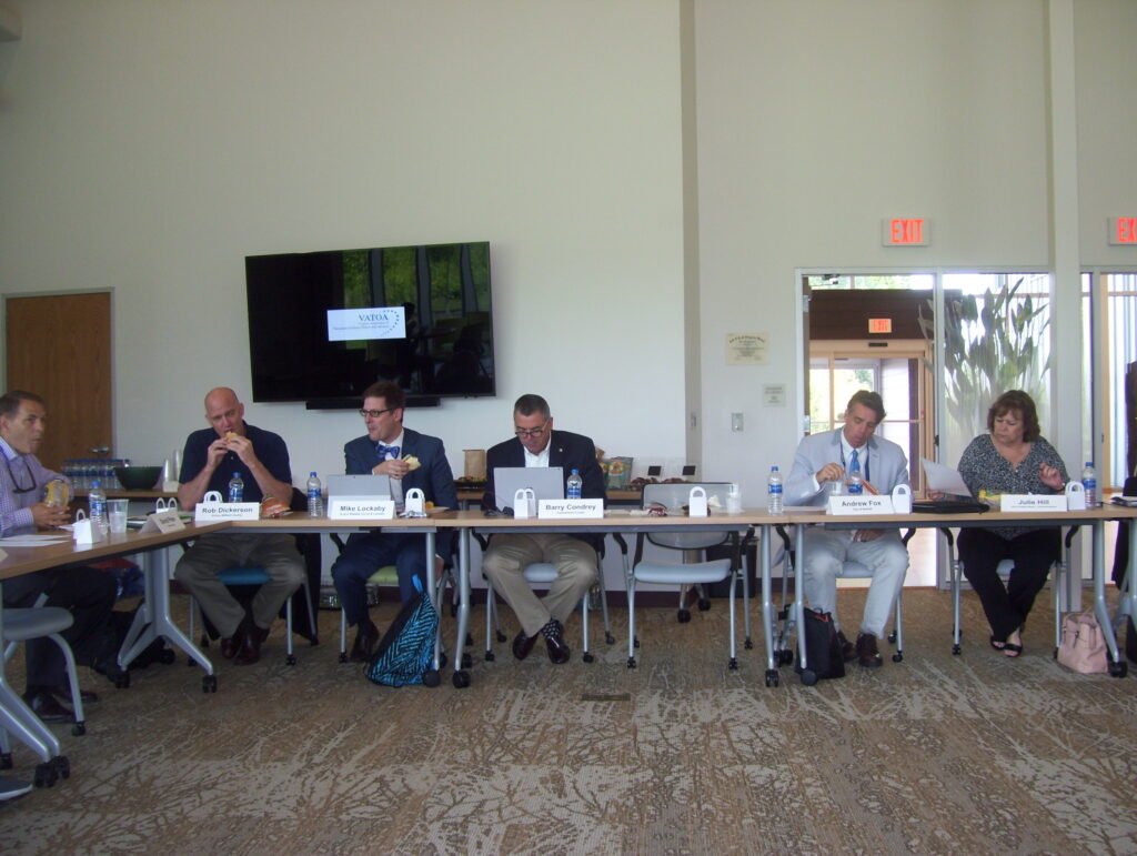 Photos from VATOA’s 2022 Annual Conference in Fredericksburg Fredericksburg police department, site of VATOA meeting FTD training room – VATOA meeting Kathleen, Tracy, Erin, Rob Evan Feinman Mike Lockaby presents Matt Ames, Rob Dickerson at VATOA meeting Ellen, Kelly, Catharine Kathleen Dooley, VATOA annual meeting Scenes from VATOA’s 2019 Annual Conference